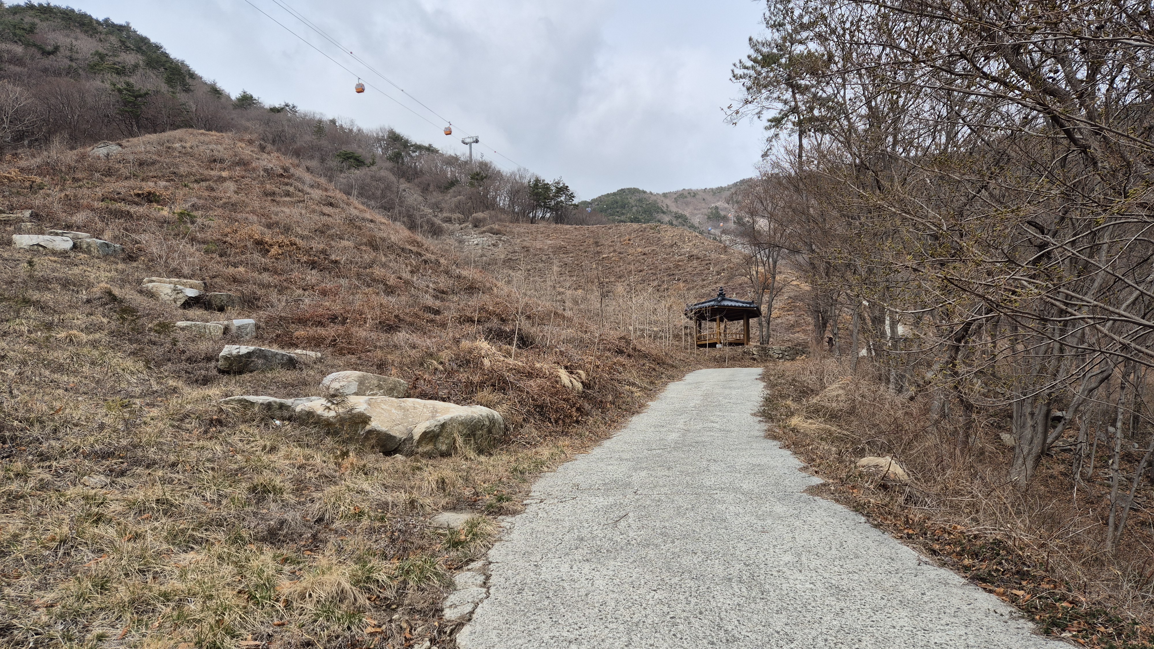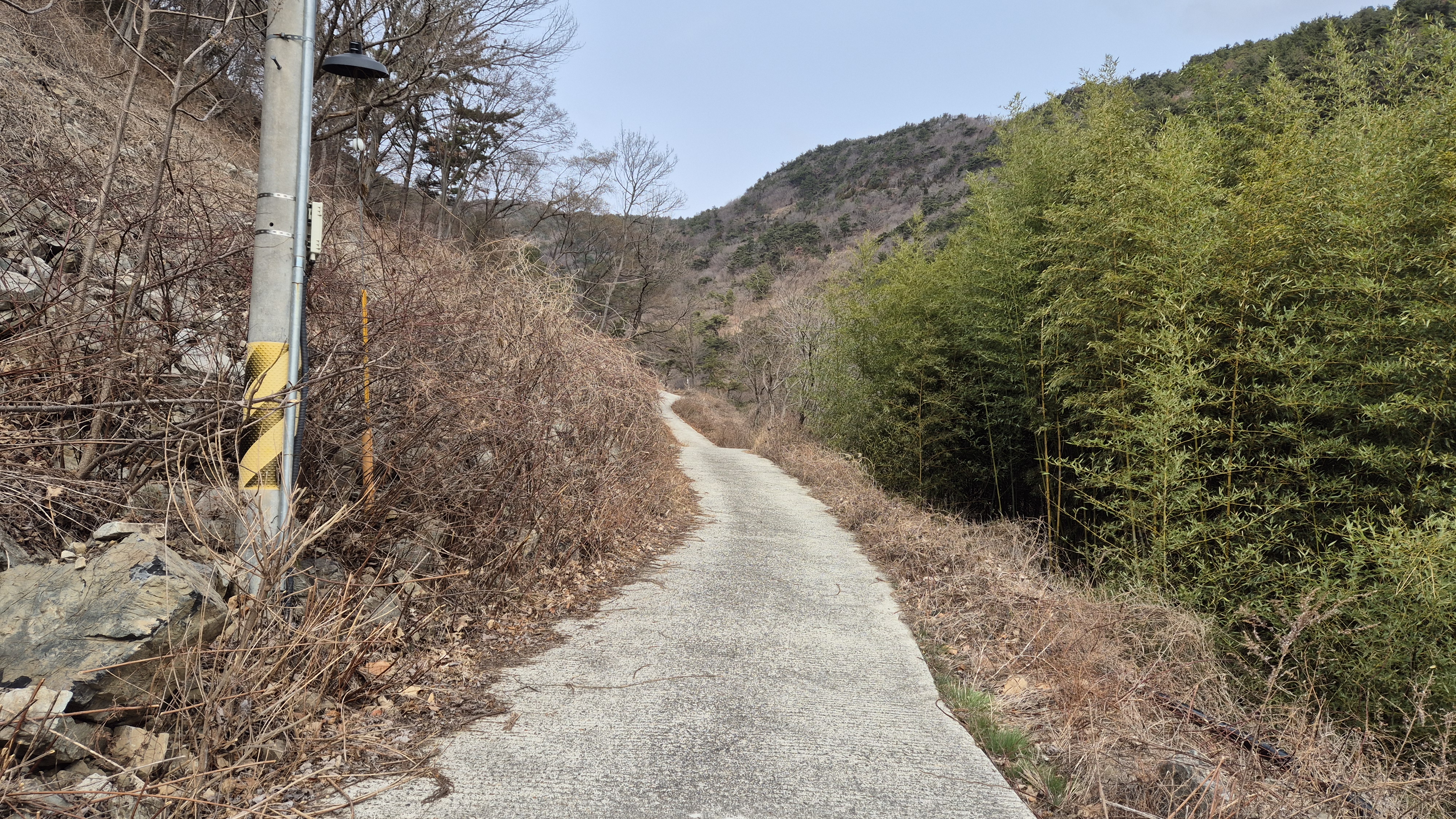 ㅡ 하산도중 등산로를 이탈해서 집라인 때문에 설치해 놓은 콘크리트 도로를 따라 내려왔는데 시간은 단축되었으나 등로보다는 더 힘들었다.